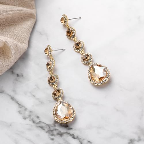 BriLove Women's Elegant Wedding Bridal Crystal Beaded Teardrop Chandelier Dangle Earrings 5