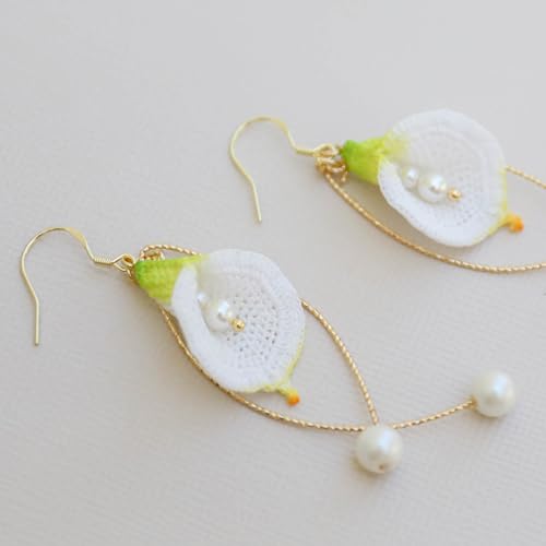 More information about Handmade Calla Lily Dangle Earrings – Micro-Crochet Flower, 14K Gold-Plated Hooks, Lightweight Bridal & Bridesmaid Jewelry Gift for Women