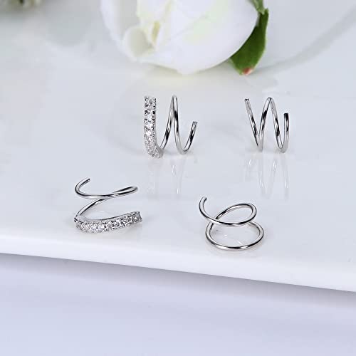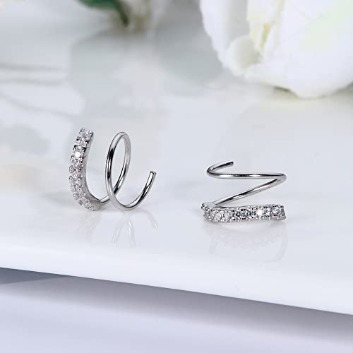 FUNRUN JEWELRY 2Pairs 925 Sterling Silver Twist Wrap Spiral Earrings for Women Double Hoop Climber Cuff Earrings Hypoallergenic Tiny CZ Cartilage Twist Piercing Earrings 5