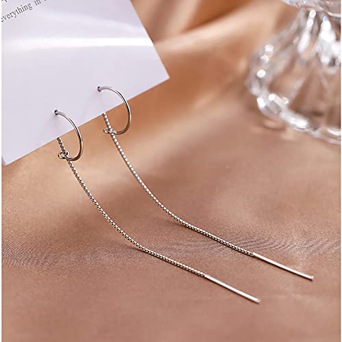 HOT ! Reffeer Solid 925 Sterling Silver Chain Dangle Earrings Tassel for Women Teens Long Dangle Earrings Minimalist Threader Earrings