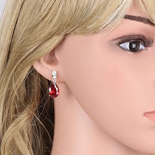Fashion Jewelry Silver Tone Blue Red Cubic Zirconia Teardrop Drop Earrings for Women 7