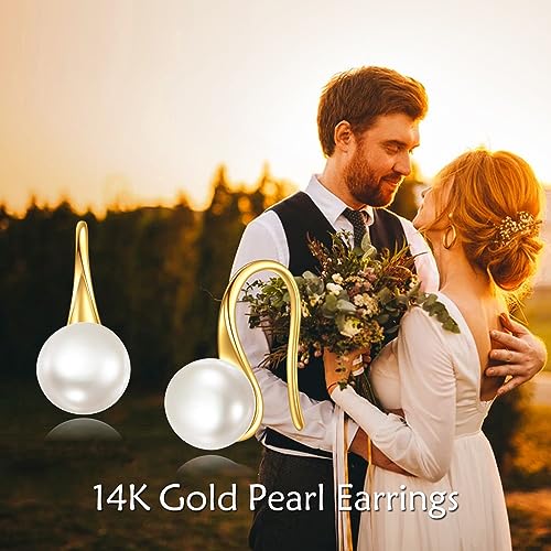 KECHO 14K Gold Freshwater Pearl Dangle Earrings Real Gold Pearl Drop Jewelry Anniversary Birthday Gifts for Women 5