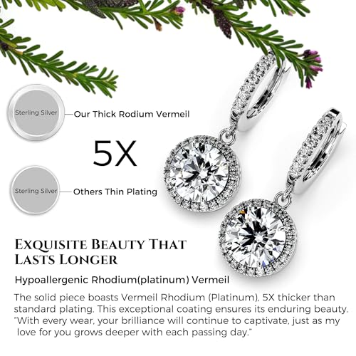 Moissanite Diamond Drop Earrings for Women Halo Solitaire S925 Rodium Vermeil Sterling Silver Dangle for Wife Girlfriend Mom Gifts for Her Daughter on Birthday Wedding Anniversary 1