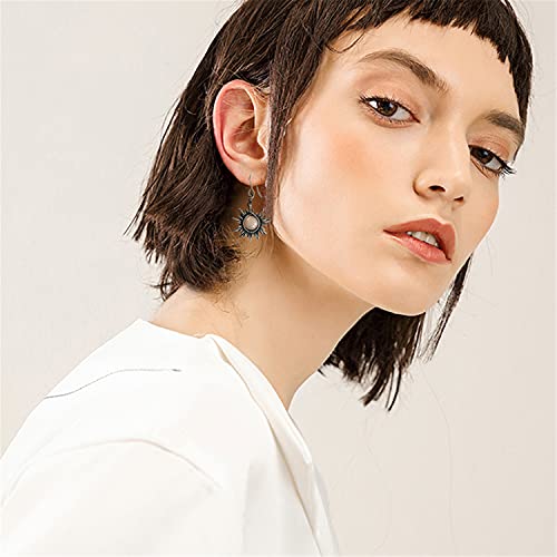 ANDPAI Unique Chic Abstract Hollow Black Vintage Silver Asymmetry Moon Star Sun Dangle Drop Earrings Black Moonstone Moon Hypoallergenic Earrings for Women Statement Jewelry Gifts 5