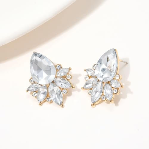 • 【Rhinestone Earrings】: Stud Earrings feature clusters of dainty marquise-shaped and teardrop rhinestones which just perfect for your vintage 1920s art deco, Great Gatsby, Downton Abbey style weddings & events, and also make for the perfect Bridesmaid Proposal.