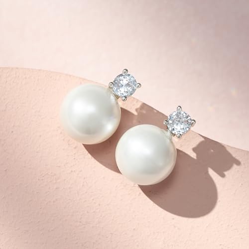• 【925 Sterling Silver】:Genuine shell pearls, Finest Quality AAAAA Grade Cubic Zirconia, Silver Plated Copper. Delicate 925 Sterling Silver post with bullet clutch earring backs. Safe for Sensitive Ears, Hypoallergenic, Nickel-Free, Lead-Free.