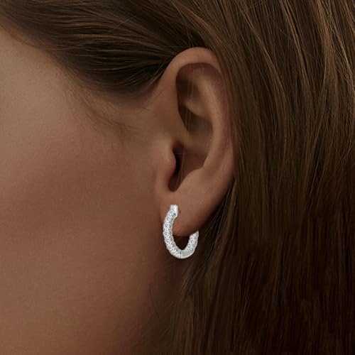 HOT ! Sterling Silver Cubic Zirconia Hoop Earrings for Women - Lightweight Hypoallergenic Nickel Free Sparkle Halo CZ Huggie Loop Earrings for Sensitive Ears Minimalist Fashion Jewelry Gifts,20MM