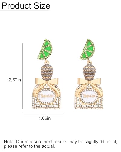 2 Pairs Tequila Earrings for Women Trendy Tequila Wine Glass Earrings Rhinestone Lime Tequila Wine Bottle Ear-Rings Birthday Holiday Party Prom Celebration Jewelry Accessories 5