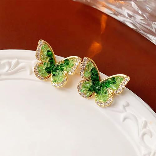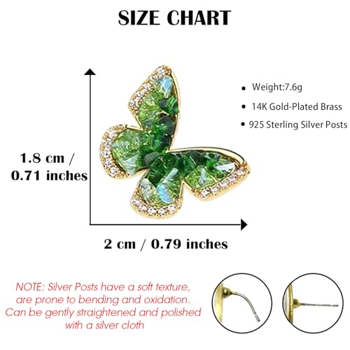• Exquisite Butterfly Stud Earring Design: Green butterfly studs with geometric + round-cut crystals, crafted for day-to-night versatility,making them a must-have accessory.