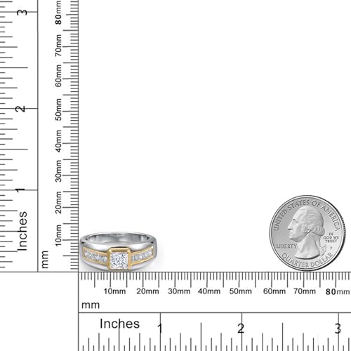 Gem Stone King 925 Silver and 10K Yellow Gold 5MM Princess Cut Gemstone Birthstone and 2.4MM Round Lab Grown Diamond Statement Ring For Men | Available in Size 7-13 4