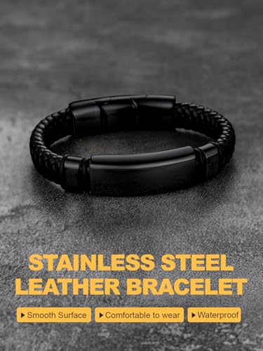 U7 Mens Leather Bracelet with Stainless Steel Clasp, Leather Cuff Bracelet in Skull or Wrap Style Black Bracelets for Husband 5