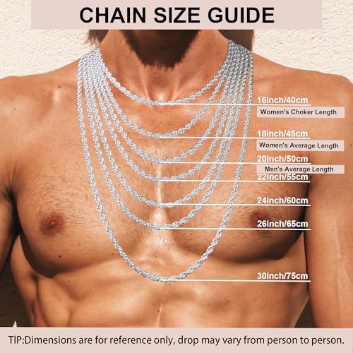 • 『Classic Fashion』-The silver rope chain is the perfect combination of durability and shine. The rope chain is equipped with a 925 sterling silver clasp that is easy to use, a sturdy lobster claw that ensures the chain stays securely fastened to your neck. The rope design of the chain gives it a timeless, classic look that will never go out of style.