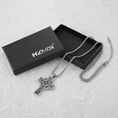 HZMAN Stainless Steel Celtic Cross Necklace for Men Women Vintage Viking Irish Knot Amulet Pendant Jewelry Gift 1
