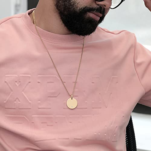 HOT ! Gem Stone King Custom Free Engraving Gold Plated Tungsten Carbide Solid Polished Disc Pendant Necklace with White Lab Grown Diamond | G-H Color | SI1 Clarity | With 24 Inch Stainless Steel Chain