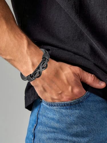 Infinity Bracelet for Men,Stainless Steel Silver/Black Men Infinity Leather Bracelet Wristband Cuff Bracelet 21 cm / 8.26 inches 5