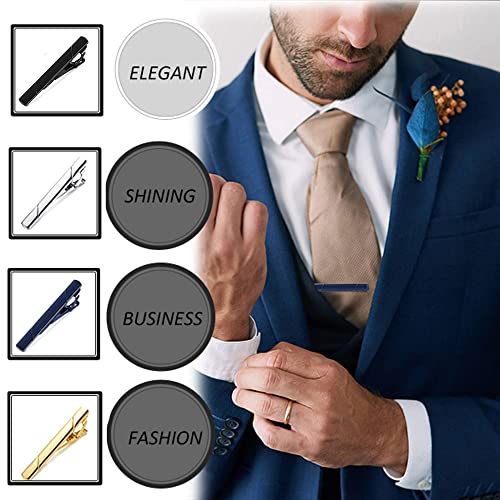 • Gorgeous Tie Clip: You will get 8pcs classic tie clips, including 5pcs silver tie clips, 1pcs black tie clips, 1pcs gold tie clip, 1pcs blue tie bar. Muti-style tie clip goes well with your different ties and keep your ties the most flattering look, will never go out of style. These tie clips firmly hold your tie very well and also are nicely decorations on your tie, give you a business formal look.