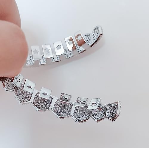 • FEATURE:The iced out grillz for men women features Top and Bottom 8 teeth and are divided into no drill and bling CZ teeth.