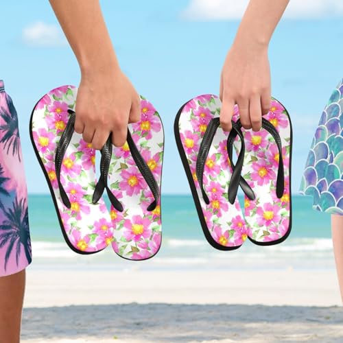 Pink Flower Leaves Flip Flops for Beach Thong Sandals Anti-slip Lightweight Shower Shoes for Summer Outdoor Travel 7