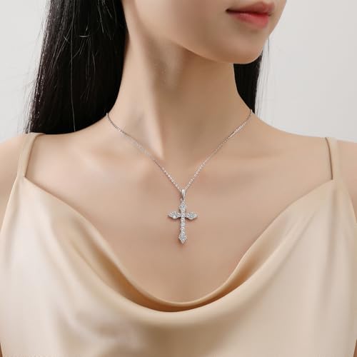 Moissanite Cross Necklace for Women Men,925 Sterling Silver Cross Necklaces 1.2/2.8/3.0 CTTW D Color VVS1 Moissanite Pendant,Christian Gift for Women Men 1