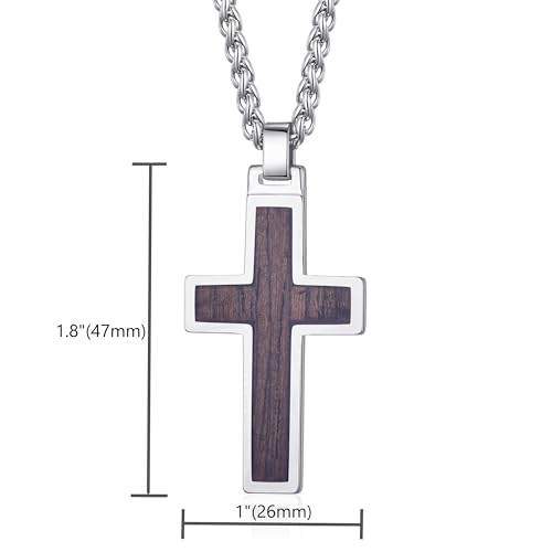 More information about MOO&LEE Tungsten Cross Pendant Necklace for Men Wood Inlay Fiber Inlay Cross Necklace Tungsten Jewellery