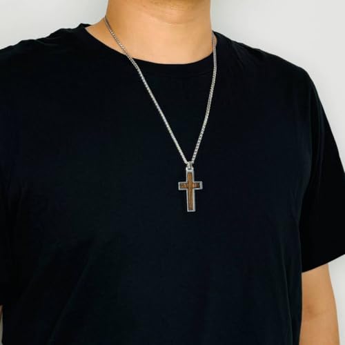MOO&LEE Tungsten Cross Pendant Necklace for Men Wood Inlay Fiber Inlay Cross Necklace Tungsten Jewellery 4