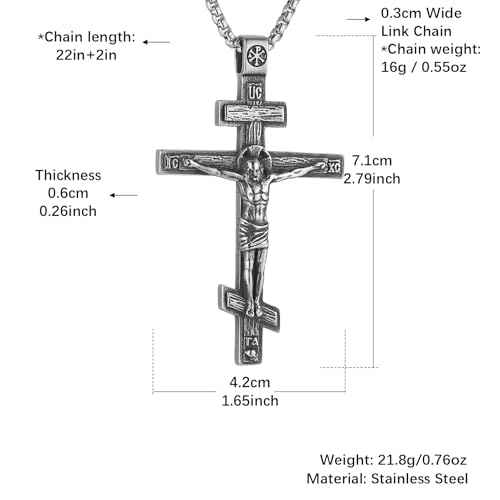 HZMAN Eastern Orthodox Cross Necklace for Men Retro Religious Jesus Crucifix Byzantine Cross Christian Pendant Necklace 4