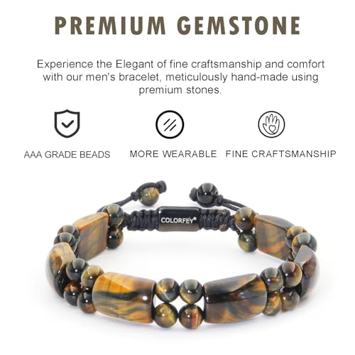 Mens Tiger Eye Stone Bracelet - COLORFEY Real Mens Beads Bracelets Unique Tiger Eye Crystal Bracelet 2