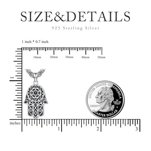 Hamsa Hand Necklace 925 Sterling Silver Hand of Fatima with Star of David Pendant Jewish Jewelry Women Men 5