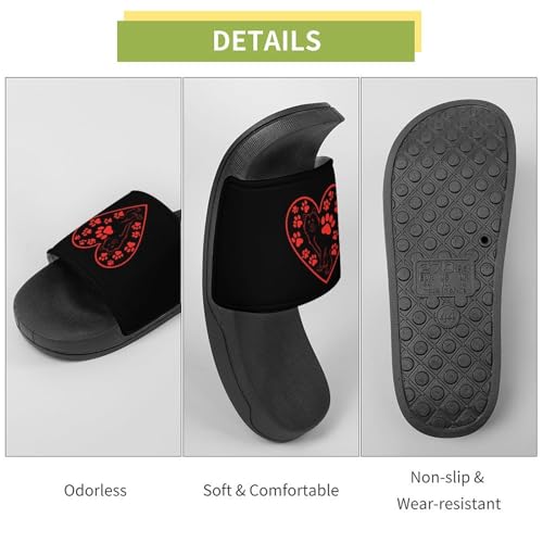 HOT ! Heart with Dog Paw Prints Non Slip Slides Sandals for Women Men Quick Drying Shower Shoes for Bathroom Pool Beach