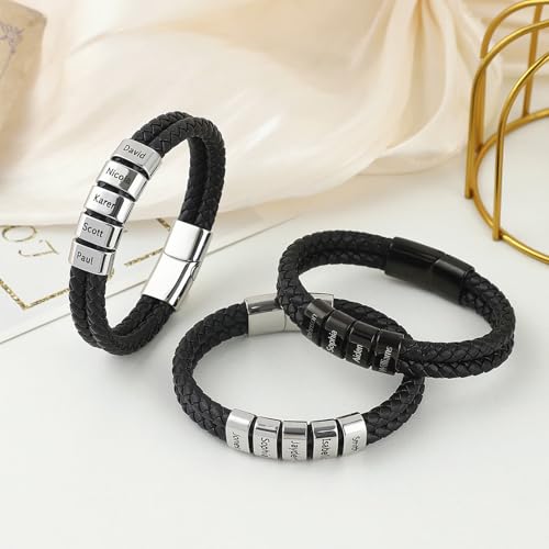 • Personalized Mens Bracelet :This custom leather bracelet is designed specifically for men adding a touch of style and fashion to any outfit.This mens bracelet allows you to freely engrave names, dates, or special symbols on the beads. Your customization makes each bracelet unique and perfectly suited to your preferences.
