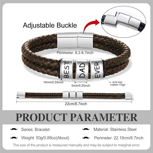 Custom Mens Bracelet with Famliy Name Adjustable Braided Leather Bracelets Personalized Fathers Day Dad Gifts from Daughter Son 4