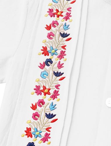 • The Mexican Guayabera shirt short sleeve button down embroidered shirt, helps your boy create a lovely and charming look. Short sleeve band collar shirt, single-breasted buttons at front, can show your cuteness and charm. Embroidered multi-colored flowers and pleats, a traditional Mexican style, makes your kid vivid and lovely because of the color