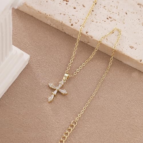 VIROMY Gold Cross Necklace for Women Dainty Diamond Cross Pendant Necklaces Non Tarnish Waterproof Necklace Simple Choker Minimalist Jewelry 5