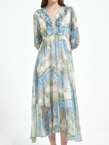 • 【Elegant Party & Wedding Guest Dress】Ideal for special events—wear it as an elegant party dress, wedding guest dress, or for photoshoots. The v-neck ruffle detail and 3/4 sleeves add a feminine, boho chic touch.