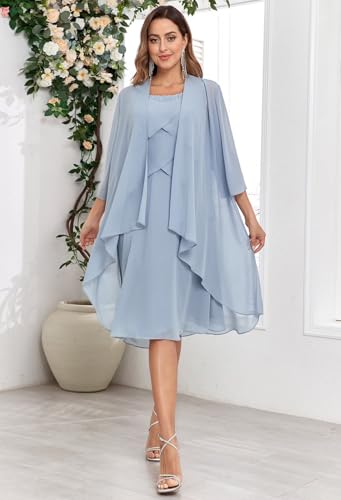 • FEATURES:2 Piece Mother of the Bride Dresses,Ruffles Chiffon Mother of the Bride Dresses for Wedding,Knee Length Mother of the Bride Dresses,Plus Size Mother Bride Groom Dress,Wedding Guest Dress,Formal Evening Gown,Short Cocktail Dress,A Line,Short Length,Built-in-Bra,Zipper Back.