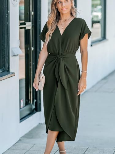 • [Multi Occasional & Gifting]: This V Neck Wrap Midi Dress is perfect for Spring & Summer casual daily wear, semi or formal occasions, working day, cocktail, homecoming, new year party, school day, evening dress, ceremony, welcome dress, girls dinner, wedding, and cafe etc. This army green midi dress is the ideal gift for yourself, girlfriend, wife, mother.