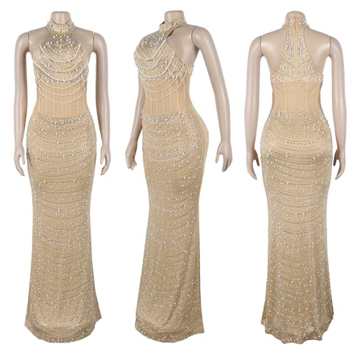 More information about PORRCEY Women Sexy Elegant Rhinestone Mesh See Through Evening Dresses Party Club Night Clubwear
