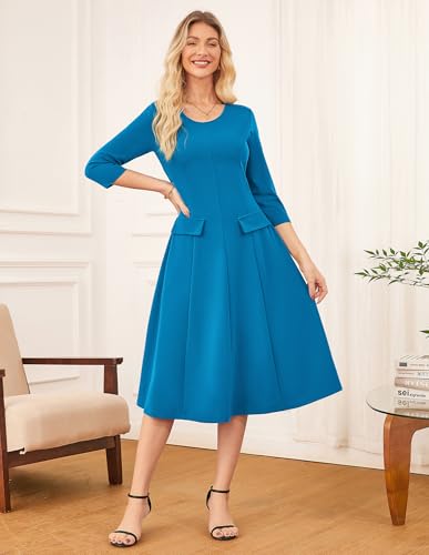 GRACE KARIN 2025 Wear to Work Dress for Women A Line Midi Fit 3/4 Sleeve Church Round Neck Business Dresses 3
