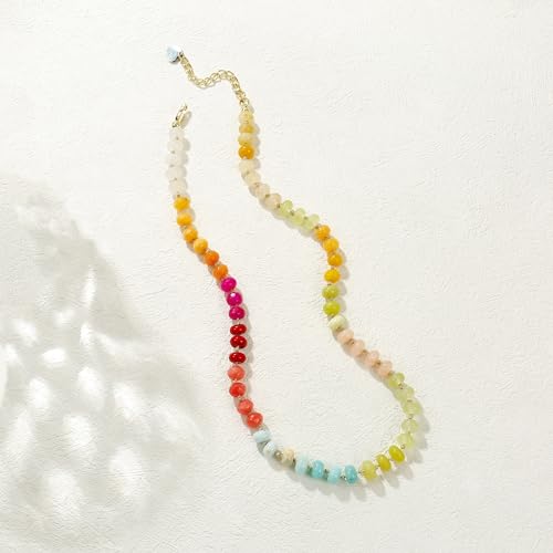• Rainbow Necklace: The rainbow necklace made of natural stone beads and stainless steel buckle, skin friendly non-toxic, nickel free, light weight, suitable for most people to wear.surfer necklace,beach necklace,summer necklace,boho necklace.colorful beaded necklaces for women