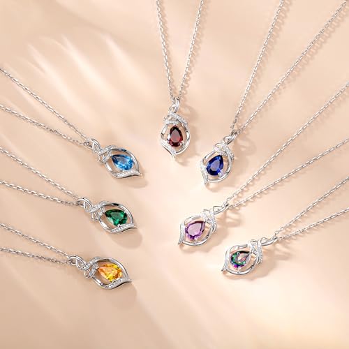 FANCIME Teardrop Gemstone Necklace for Women S925 Sterling Silver Elegant Ribbon Pendent Birthday Gifts for Her, 16"+2" Inches 5