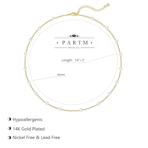 Partm Pearl Necklace for Women Trendy 14K Gold Plated Dainty Pearl Pendant Choker Set Handmade Pearl Gold Necklace Non Tarnish Simple Cute Jewelry Gifts for Women 3