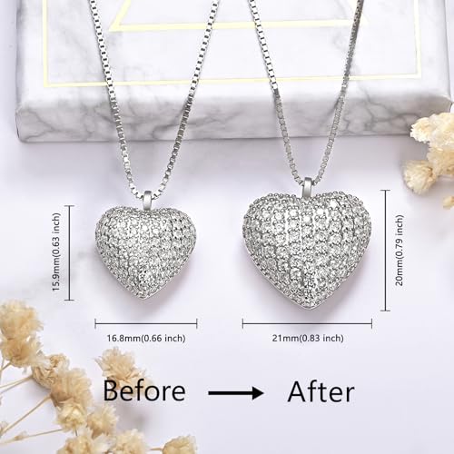 • Comparison Size before and after improvement: Chain Length 20 inches; Widened the heart from 0.67 inches to 0.83 inches; Thickened the heart from 0.36 inches to 0.39 inches