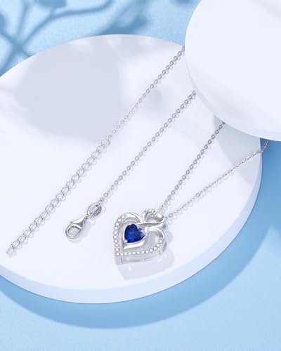 Heart Birthstone Necklace Sterling Silver Birthstones Jewelry, Women Love Heart Pendant Necklaces for Mom Grandma Birth Stone Birthday Gifts 5