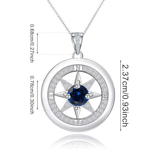 • Sterling Silver compass pendant necklace is inspired by "always guide you", a deep blue cubic zirconia is inlaid in the center, symbolizing guidance and hope.