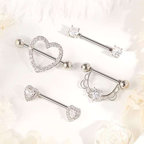 Shakalaka Surgical Steel Nipple Rings Body Piercing Jewelry for Women with Cute Heart 14g 4