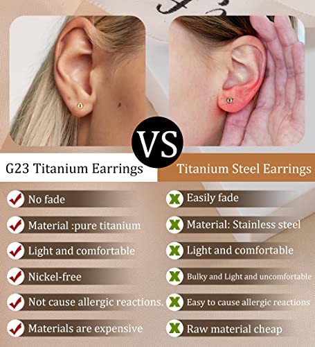 • Titanium Earrings Set: G23 Titanium earrings are a great jewelry material. Titanium stud earrings are made from pure titanium, No allergy, No irritation, our pure titanium earrings are implant grade titanium earrings, Nickel-free, and Lead-free. Let everyone wear safety and comfort, especially for sensitive skin.