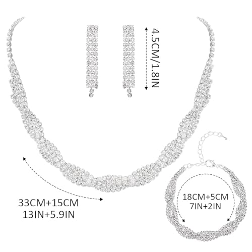 More information about Unicra Wedding Jewelry Sets Silver Rhinestone Necklace Earrings Bracelet Sets Prom Jewelry Accessories for Women and Brides
