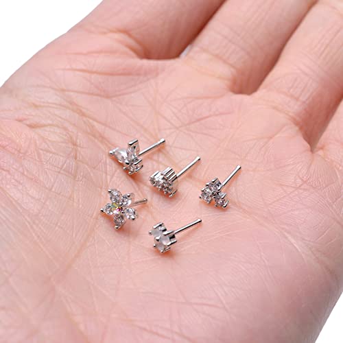 Tornito 9Pcs Nose Rings Stud L Bone Screw Shaped Nose Ring Flower CZ Snowflake Butterfly Screw Nose Stud Body Piercing Jewelry for Women Men 20G Silver Gold Rose Gold Tone 5