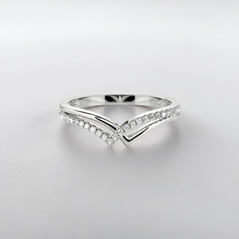 • Moissanite Wedding Bands for Women: Celebrate your love with this stunning moissanite wedding band, featuring a sleek V-shaped double band where one side sparkles with a row of 0.1-carat round-cut stones. Its minimalist yet refined design captures the beauty of simplicity, symbolizing two hearts meeting at one point