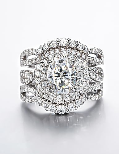 CannyCat Oval Cut Moissanite Cathedral Wedding Ring Sets for Women Infinity 3.15 CTTW Moissanite Bridal Set Platinum-Plated Sterling Silver Engagement Ring Curved Guard Enhancers (size-7) 3